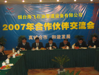3月18日上午10點(diǎn),煙臺海飛石油管道設(shè)備有限公司2007年合作伙伴交流會在青島國際大酒店隆重舉行。共有來自全國各地的海飛供應(yīng)商代表50余人參加了會議,海飛公司董事長兼總經(jīng)理徐大同,副總經(jīng)理李大海,財(cái)務(wù)總監(jiān)王霞等公司領(lǐng)導(dǎo)出席會議。