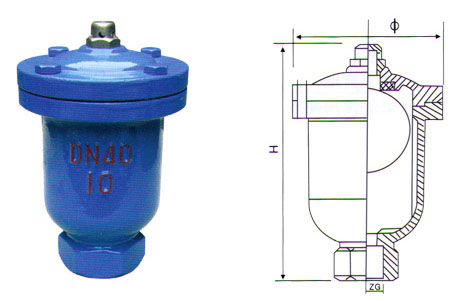 本閥門為圓桶狀式閥體,其內(nèi)部結(jié)構(gòu)主要有不銹鋼浮球。本閥分為絲扣式和法蘭式兩種排氣閥。 QBI型適用與工作溫度≤80℃的管路上,作為排除管路內(nèi)氣體的設(shè)備。
