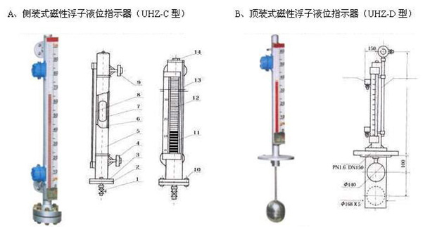 測裝式指示器 Installation on tank shell Magnetic Level Gage |